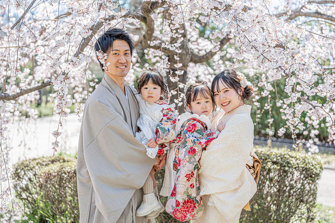 晴れ着姿のお子様とご家族みなさまの最高の思い出として記念撮影を。スタジオ撮影とロケーション撮影のプランをご用意いたしました。